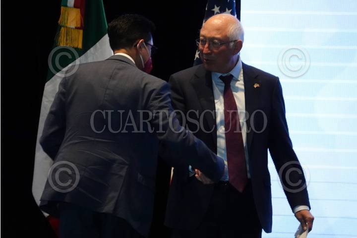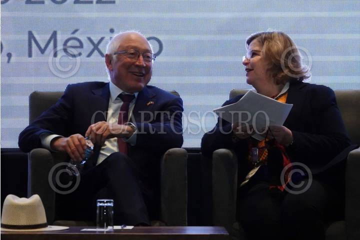 Ken Salazar y Nadine Gasman durante la Conferencia Naiconal "Mujeres y Seguridad".