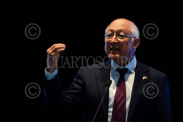 Roberto Velasco y Ken Salazar durante la Conferencia Naiconal "Mujeres y Seguridad".