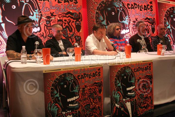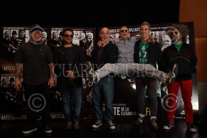 MÉXICO, D.F., 01DICIEMBRE2009.- Los integrantes de los Fabulosos Cadilacs, posan para los fotografos, durante la presentación de su nuevo disco "El arte de la elegancia de la LCF". FOTO: SÁSHENKA GUTIÉRREZ/CUARTOSCURO.COM