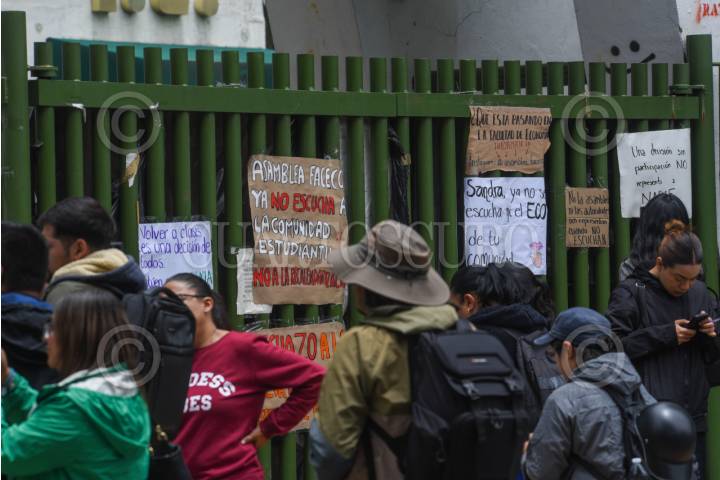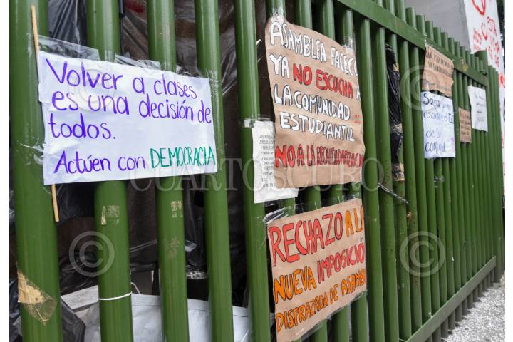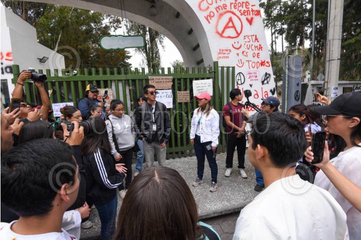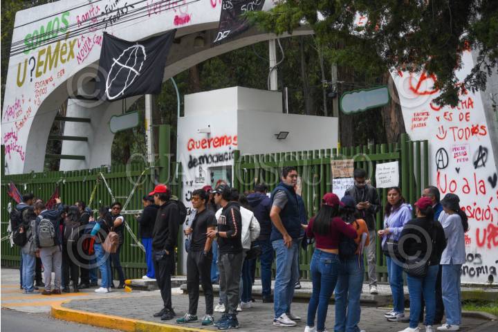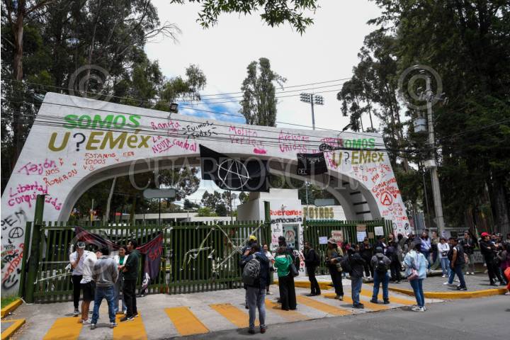 TOLUCA, ESTADO DE MÉXICO, 07AGOSTO2025.- Estudiantes de la Facultad de Economía de la UAEMÉX se plantaron afuera de la facultad para pedir el regreso a clases, no están de acuerdo con el paro, por algunos momentos dialogaron con integrantes de la asamblea. FOTO: CRISANTA ESPINOSA AGUILAR/CUARTOSCURO.COM