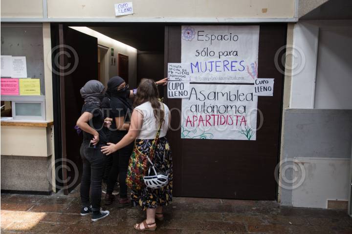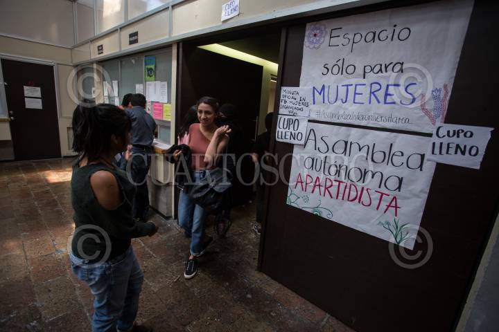 CIUDAD DE MÉXICO, 22MARZO2018.- Mujeres entre estudiantes, profesoras y trabajadoras de diferentes Facultades y centros de investigación de la Universidad Nacional Autónoma de México, realizaron la primer Asamblea Interuniversitaria después de los últimos casos de de agresiones y acoso sexual en la Universidad. La reunión realizada en el auditorio Ho Chi Minh de la Facultad de Economía estuvo cerrada para los hombres. FOTO: ADOLFO VLADIMIR /CUARTOSCURO.COM