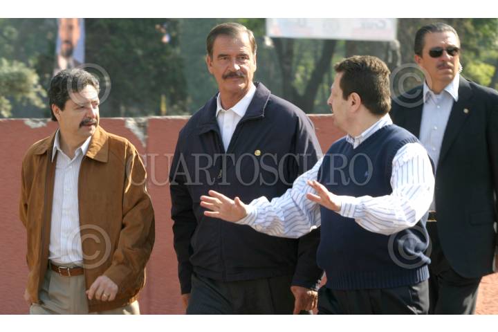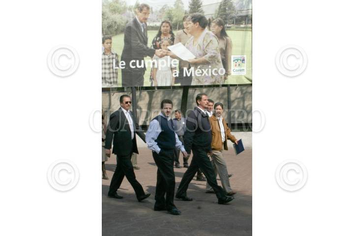 MEXICO, DF, 16ENERO2006.- Enrique Lepine Muñoz director general de la comisión para la regulación de la tenencia de la tierra, el presidente Vicente Fox y el jefe delegacional de la Benito Juárez, Fadlala Akabani saliendo de la ceremonia de la entrega de escrituras de CORETT y Liberación de Reservas de Dominio, que tuvo lugar en la explanada de la delegación Benito Juárez FOTO: Leonardo Casas/CUARTOSCURO.COM