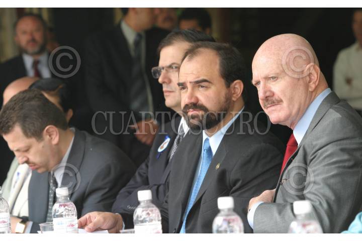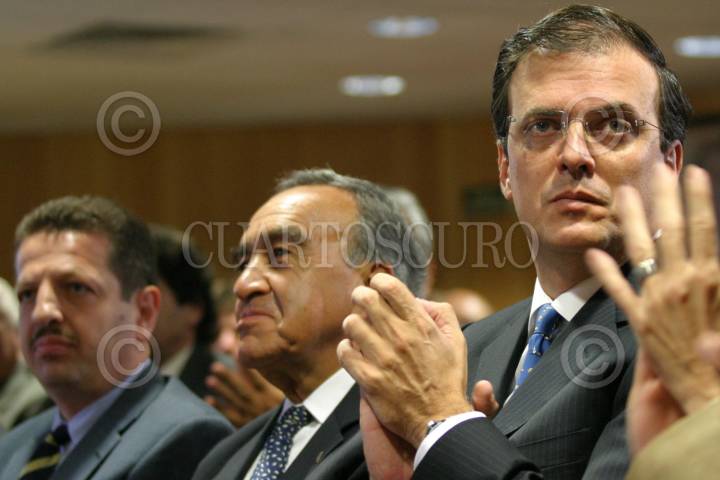 México, D.F. 10 AGOSTO 2004.- El delegado de la Benito Juárez, Fadlala Akabani, Cesar Buenrostro, secretario de Obras y Marcelo Ebrard (SSP), durante el evento de inauguración del Tribunal de lo contencioso administrativo del D.F. FOTO: Sandra Perdomo/CUARTOSCURO.COM