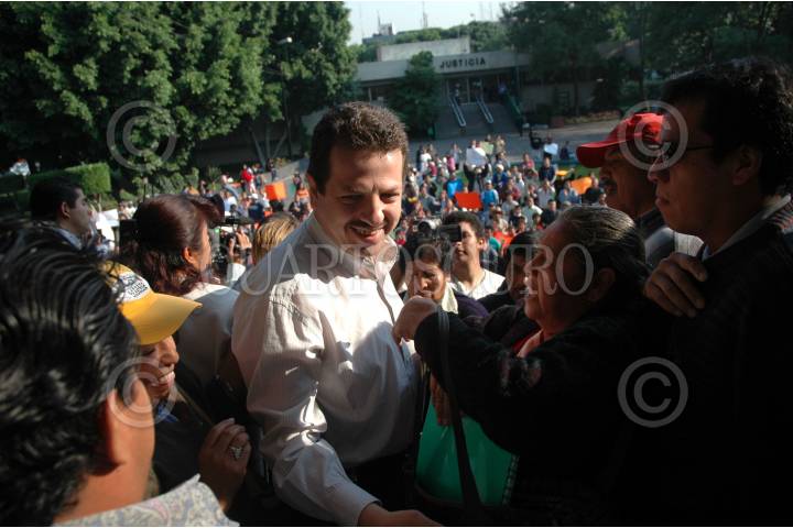 MEXICO, D.F. 09MAYO2005.- Fadlala Akabani, jefe delegacional de Benito Juárez, saLió a atender a los comerciantes de la vía pública que se manifestaron en la sede delegacional para protestar por la intromisión de vendeDores informales lidereados por María Rossete, una de las representantes que dominan parte del Centro Histórico. FOTO: Iván Stephens/CUARTOSCURO.COM