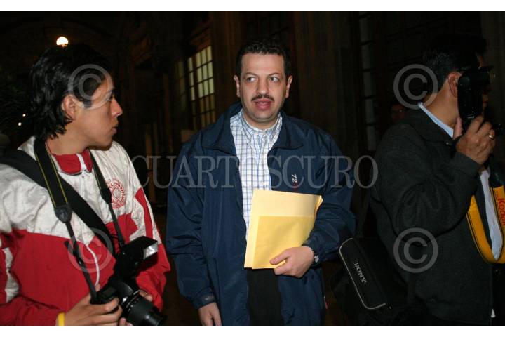 MEXICO, D.F. 23FEBRERO2005.- Al centro, el delegado de Benito Juàrez, Fadlala Akabani, visitò la sede del gobierno capitalino, poco antes de que el mandatario local ofreciera su conferencia matutina. FOTO: Sandra Perdomo/CUARTOSCURO.COM