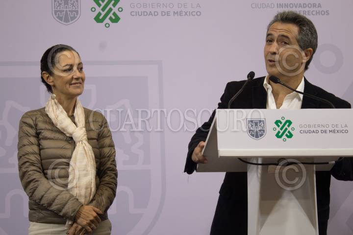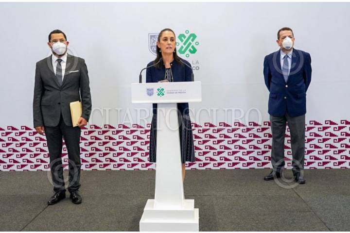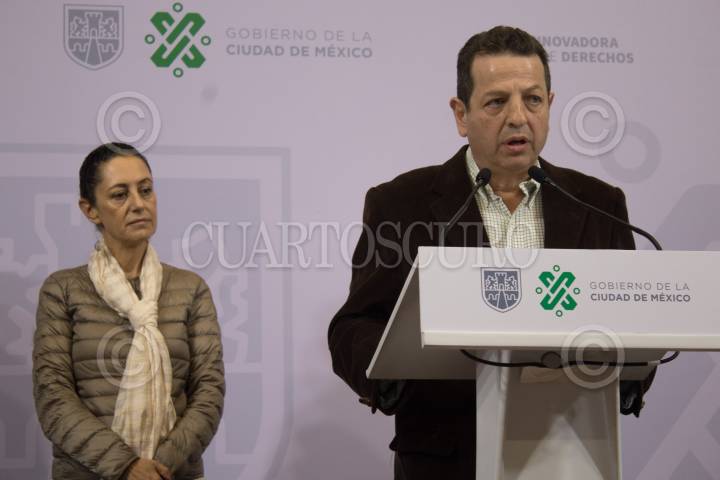 Martí Batres Guadarrama, jefe del Gobierno de la Ciudad, encabezó la conferencia de prensa, lo acompañaron Ricardo Ruiz; Secretario de Gobierno y el titular de Desarrollo Económico, Fadlala Akabani Hneide.