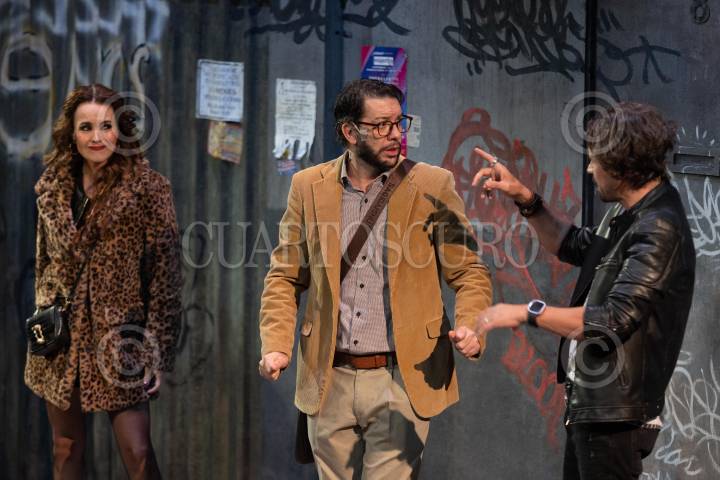 CIUDAD DE MÉXICO, 01DICIEMBRE2023.- Alejandra Barros, Faisy y Juan Martín Jáuregui durante la función de "Escape Room" donde se reconoció la trayectoria de Faisy, en el Teatro Libanés. FOTO: EDGAR NEGRETE LIRA/CUARTOSCURO.COM