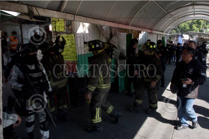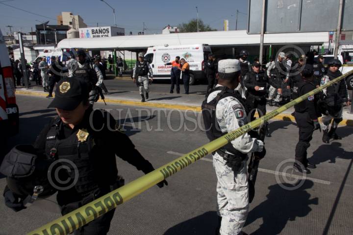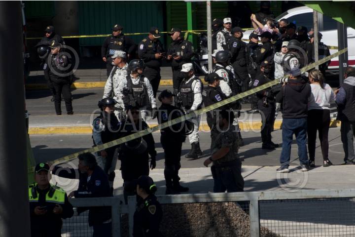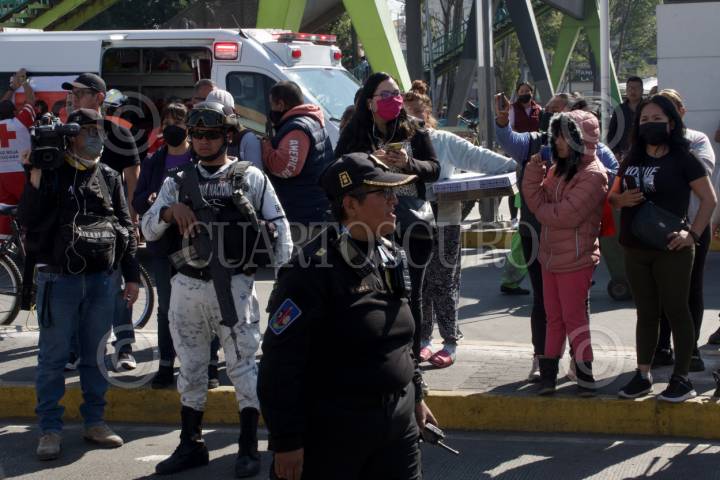 Elementos de la Guardia Nacional ingresan a la estación de La Raza para resguardar la zona luego del accidente entre dos trenes del metro.