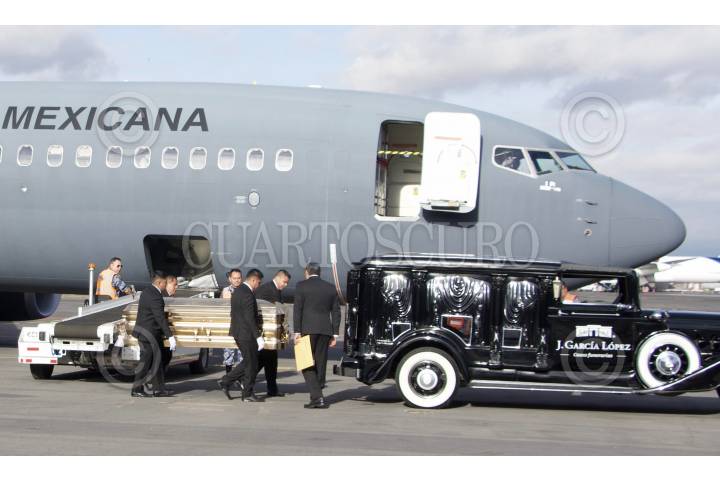 CIUDAD DE MÉXICO, 09OCTUBRE2019.- Los restos de el cantante José José, llegaron por la mañana de este miércoles al Hangar del 6to Grupo Aéreo, abordo de un avión Avión Boeing, 737 de la Fuerza Aerea. FOTO: ROGELIO MORALES /CUARTOSCURO.COM
