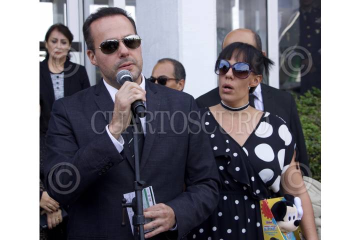 CIUDAD DE MÉXICO, 09OCTUBRE2019.- Los restos de el cantante José José, llegaron por la mañana de este miércoles al Hangar del 6to Grupo Aéreo, abordo de un avión Avión Boeing, 737 de la Fuerza Aerea. En imagen José Joel y Marysol Estrella hijos del también llamado, príncipe de la canción. FOTO: ROGELIO MORALES /CUARTOSCURO.COM