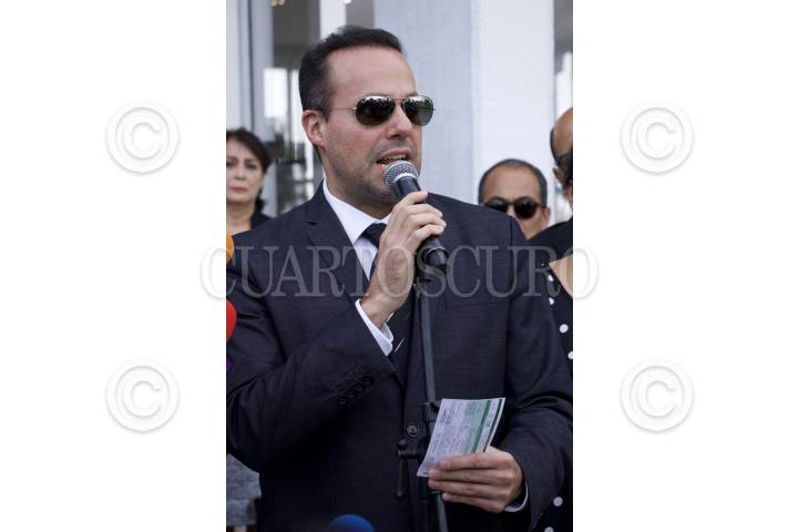 CIUDAD DE MÉXICO, 09OCTUBRE2019.- Los restos de el cantante José José, llegaron por la mañana de este miércoles al Hangar del 6to Grupo Aéreo, abordo de un avión Avión Boeing, 737 de la Fuerza Aerea. En imagen José Joel, hijo del también llamado príncipe de la canción. FOTO: ROGELIO MORALES /CUARTOSCURO.COM