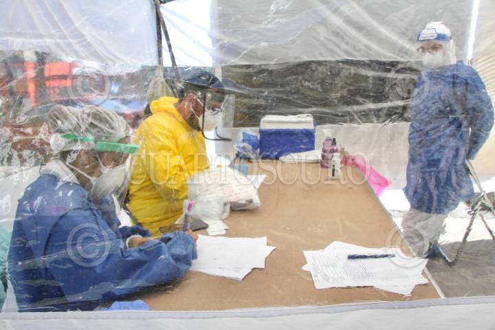 Personal médico durante su jornada laboral en el Kiosco COVID-19. FOTO: ROGELIO MORALES /CUARTOSCURO.COM