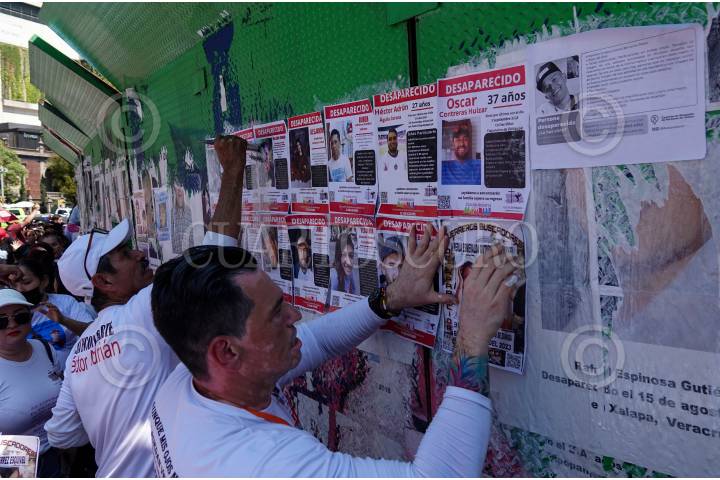 CIUDAD DE MÉXICO, 26FEBRERO2025.- Colectivos de búsqueda del estado de Jalisco se dieron cita en la Glorieta de las y los desaparecidos para realizar una nueva pega de fichas de búsqueda de sus familiares. Exigen atención por parte de las autoridades federales pues denuncian que la entidad es la número uno en desapariciones y nadie los atiende, asimismo detallaron que existe un promedio de hasta 20 de estos crímenes diariamente. FOTO: GALO CAÑAS/CUARTOSCURO.COM