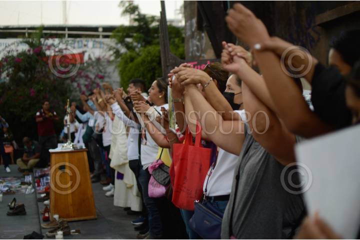 CHILPANCINGO, GUERRERO, 14MARZO2025.- Colectivos de familiares que tienen personas desaparecidas en Guerrero, iniciaron esta tarde el Día Nacional de Vigilia y Luto, tras el hallazgo de crematorios y centros de exterminio en un rancho en Teuchitlán, Jalisco. La plaza central de Chilpancingo, fue el lugar donde más de 50 personas, representantes de los colectivos colocaron unos 200 zapatos sobre el piso en memoria de las víctimas del centro clandestino de reclutamiento localizado por el colectivo Guerreros Buscadores en Jalisco. Francisca Mayo Ramírez, quien es la representante del Colectivo no más desaparecidos, dijo que desde que se enteró de la noticia de los cuerpos en crematorios clandestinos en Jalisco, se puso y al revisar los nombres y dijo que se dio cuenta que, entre las personas localizadas, existe un hombre de apellido Mayo, que consideró que pudiera ser su hijo Jonathan que desapareció en el año 2008 en Chilpancingo y desde esa fecha no se sabe de él. FOTO: DASSAEV TÉLLEZ ADAME/CUARTOSCURO.COM