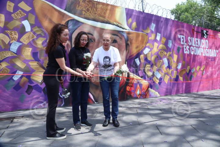 CIUDAD DE MÉXICO, 21MARZO2025. En el marco del octavo aniversario del asesinato de la periodista Miroslava Breach Velducea, familiares y asociaciones de la sociedad civil así como organizaciones defensoras de la libertad de expresión inauguraron el mural “El silencio es complicidad” en su memoria. Al acto asistieron las hermana de Misorslava, Rosa María Breach, Brisa Breach, Mirabel Breach. FOTO: EDGAR NEGRETE LIRA/CUARTOSCURO.COM