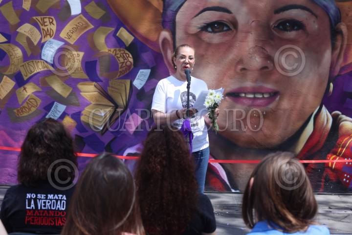 CIUDAD DE MÉXICO, 21MARZO2025. En el marco del octavo aniversario del asesinato de la periodista Miroslava Breach Velducea, familiares y asociaciones de la sociedad civil así como organizaciones defensoras de la libertad de expresión inauguraron el mural “El silencio es complicidad” en su memoria. FOTO: EDGAR NEGRETE LIRA/CUARTOSCURO.COM