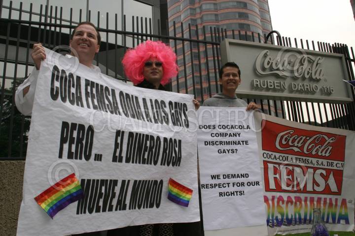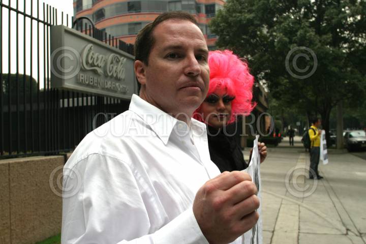 MEXICO, D.F. 26OCTUBRE2005.- Roberto Mendoza, extrabajador de la Coca Cola Famsa protestó frente a las oficinas de la empresa refresquera, él argumenta que fue despedido por sus preferencias sexuales. FOTO: Nelly Salas/CUARTOSCURO.COM