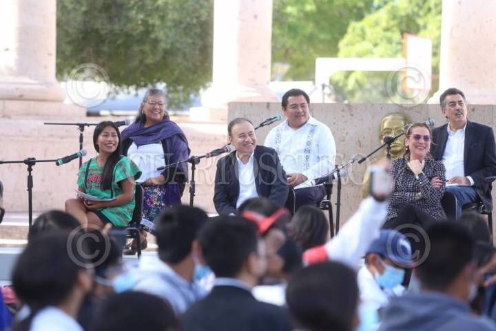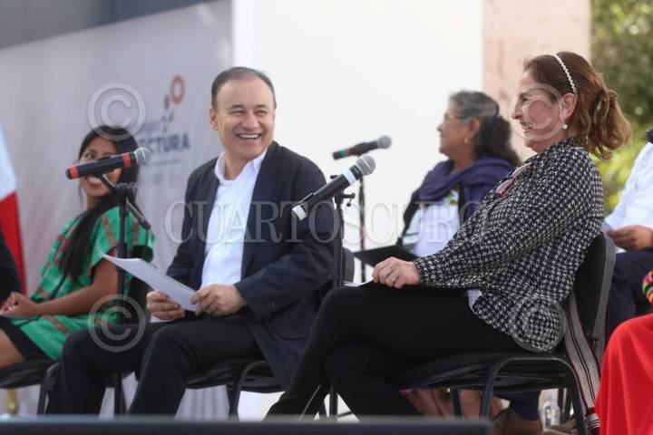 Alfonso Durazo, Beatriz Gutiérrez Müller y Yalitza participaron en el evento Fandangos por la Lectura en Cajeme, Sonora.