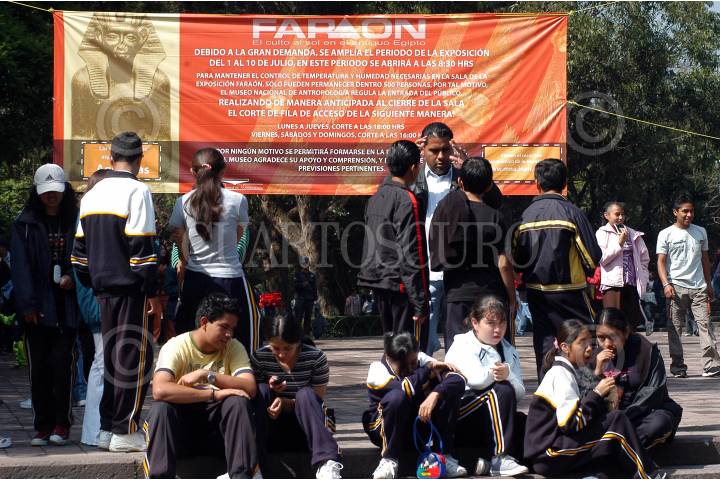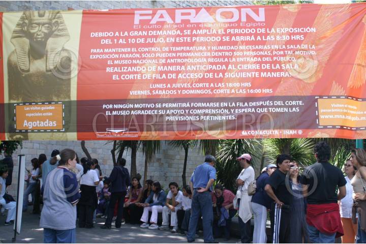 MEXICO D.F. 08JULIO2005.- Cientos de personas realizarón una fila para poder observar la exposición ¨Faraón¨. El domingo sera el ultimo dia que sera exhibida la muestra de piezas egipcias. FOTO: Germán Romero/CUARTOSCURO.COM