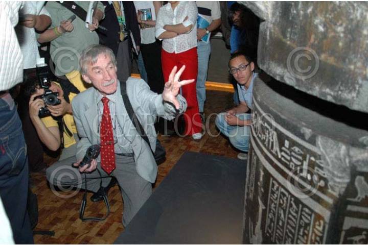 MEXICO, D.F., 23MARZO2005.- Se realizó un Recorrido por la Exposicion Faraón el Culto al sol en el Antiguo Egipto, Dietrich Wildung curador de la exhibicion y director del museo Egipcio de Berlin y Sylvia Schoskf, directora del museo estatal de arte Egipcio de Munich, durante el recorrido en el Museo de Antropología. FOTO: Laura Izquierdo/CUARTOSCURO.COM