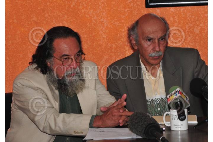 MÉXICO, D.F., 25MAYO2009.- José María Calderón, coordinador del Centro de Estudios Latinoamericanos de la Facultad de Ciencias Políticas de la UNAM, y Lucio Oliver, coordinador del Programa de Postgrados de Estudios Latinoamericanos, ofrecieron conferencia de prensa para defender a Miguel Angel Beltrán, ciudadano colombiano que estudiaba un postdoctorado en México y que fue expulsado el viernes del país y enviado a Colombia, tras ser señalado por las autoridades colombianas como un presunto miembro de las Fuerzas Armadas Revolucionarias de Colombia (FARC). FOTO ALBERTO VERA/CUARTOSCURO.COM