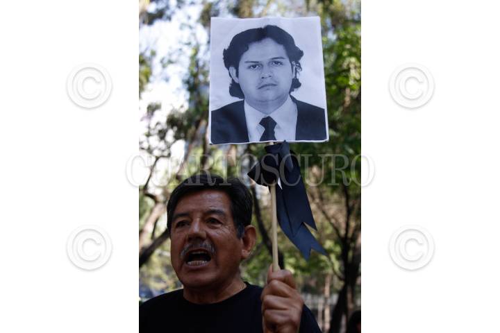 MÉXICO, D. F., 01MARZO2011.- Padres y familiares de los estudiantes que murieron durante el bombardeo que realizó el gobierno de Colombia en Sucumbíos, Ecuador, para detener al líder del las Fierzas Armadas Revolucionarias de Colombia (FARC), se manifestaron en la embajada de Colombia a tres años de estos hechos para pedir justicia. Aquñi, Telésforo Avilés, padre de Soren Ulises Avilés Ángeles, estudiante de la UNAM que falleció durante el bombardeo. FOTO: IVÁN STEPHENS/CUARTOSCURO.COM