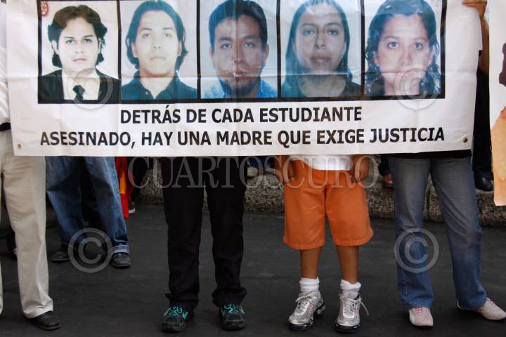 MÉXICO, D. F., 01MARZO2011.- Padres y familiares de los estudiantes que murieron durante el bombardeo que realizó el gobierno de Colombia en Sucumbíos, Ecuador, para detener al líder del las Fierzas Armadas Revolucionarias de Colombia (FARC), se manifestaron en la embajada de Colombia a tres años de estos hechos para pedir justicia. FOTO: IVÁN STEPHENS/CUARTOSCURO.COM