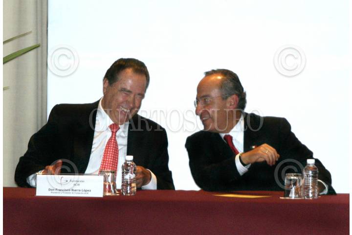 MÉXICO D.F. 06FEBRERO2008.- Francisco Ibarra Fariña director de ACIR y el presidente Felipe Calderón Hinojosa conversan durante la presentación de la fundación ACIR, realizado en el Museo Nacional de Antropologia e Historia. FOTO: SAÚL LÓPEZ/CUARTOSCURO.COM