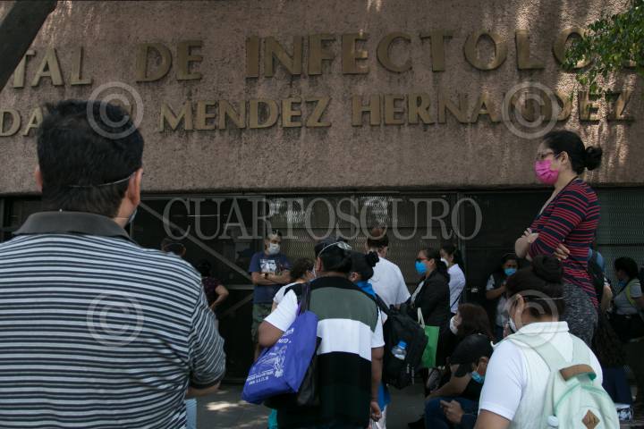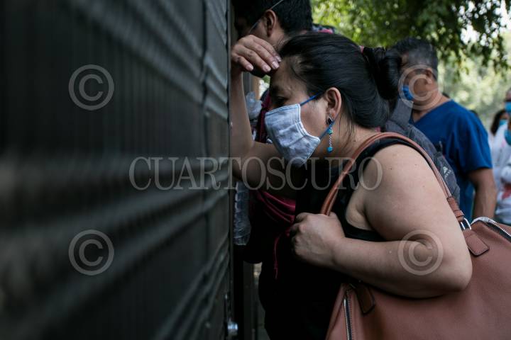 Familares de pacientes con Covid-19 esperan a las afueras de la zona de Infectología, del Hospital de la Raza, noticias sobre sus familiares internados.