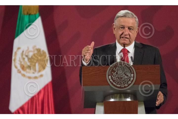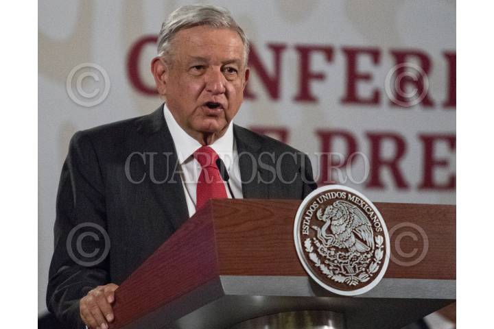 Presidente Andrés Manuel López Obrador en la conferencia matutina del día de hoy, en la que se anunció el inicio de la Fase Tres de la Contingencia Sanitaria por la pandemia de COVID-19.