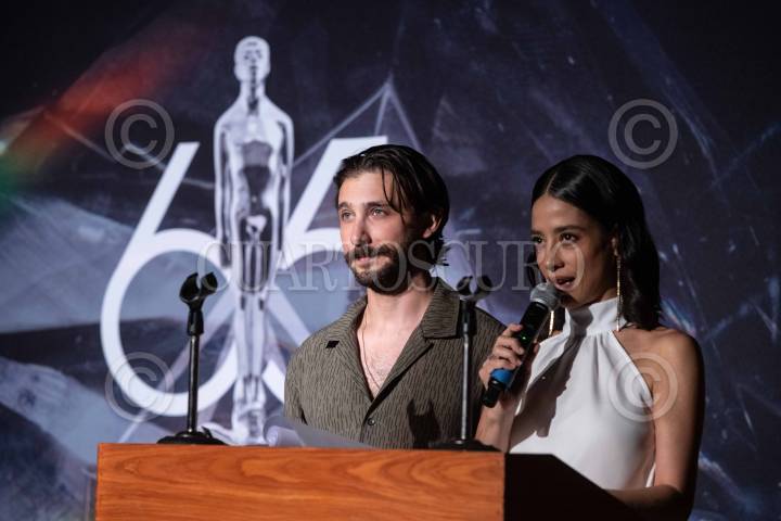 Emmiliano Zurita y Fatima Molina durante la conferencia de prensa donde se anunciaron los nominados a la 65 entrega del Premio Ariel, en el Museo Tamayo.
