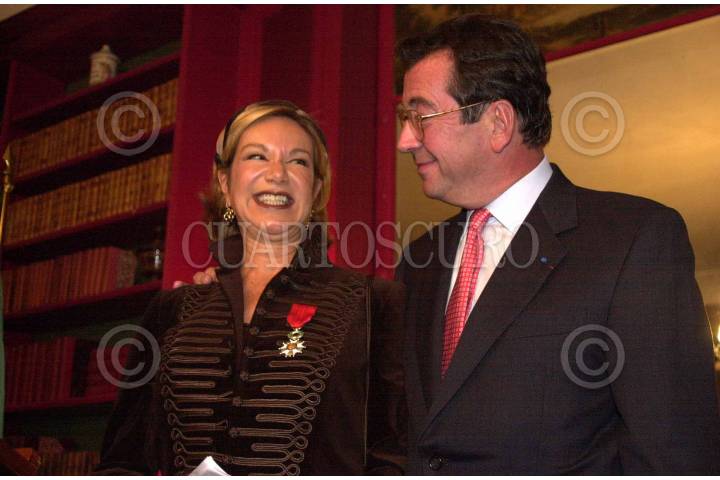 México, D.F. 17DIC2003.- La escritora Guadalupe Loaeza, recibió una medalla por parte del embejador de Francia, Philippe Faure, por su trayectoria profesional. FOTO: Sandra Perdomo/CUARTOSCURO.COM
