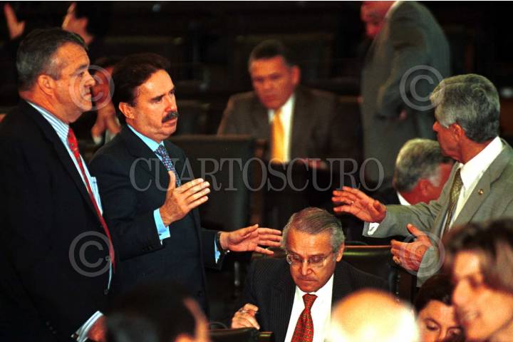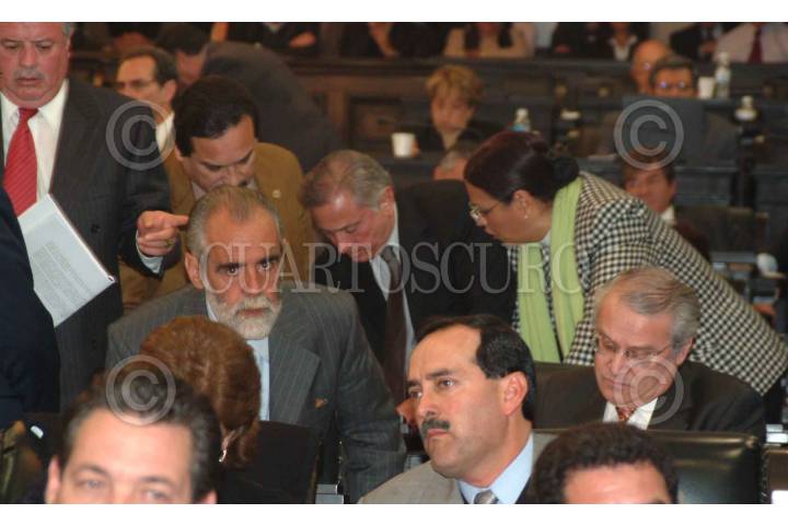 México D.F 05 Abril 2004.- Los senadores panistas, Diego Fernández de Cevallos, Cesar Jauregui y Fauzi Handam durante la sesión del senado. FOTO: Eunice Adorno/CUARTOSCURO.COM