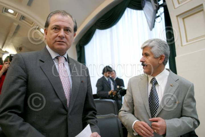 MEXICO, D.F. 07MARZO2005.- Fauzi Handam, presidente de la comisión de Hacienda en la Cámara de Senadores, y Alfonso Ramírez Cuellar, diputado y secretario de la COMIPAB, estuvieron presentes en el ¨Foro sobre protección al ahorro bancario¨. FOTO: Iván Stephens/CUARTOSCURO.COM