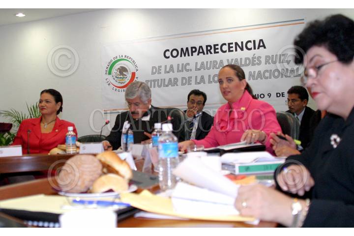 México, D.F. 09 JUNIO 2004.- La senadora Dulce María Sauri y el senador Fauzi Handam durante la conferencia de Laura Valdés Ruiz, titular de la Loteria Nacional. FOTO: Sandra Perdomo/CUARTOSCURO.COM