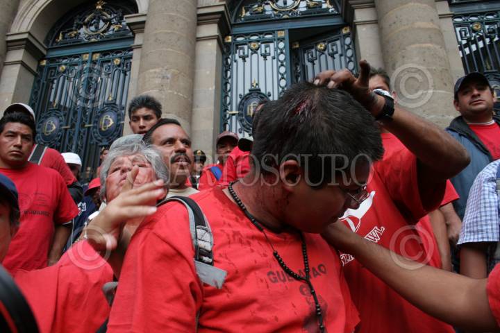 MÉXICO, D.F., 10NOVIEMBRE2008.- Un grupo de granaderos del Gobierno del Distrito Federal trataron de impedir el paso de la Marcha del Frente Popular Francisco Villa, que se dirigia a la Asamblea Legislativa, donde hubo empujones y resultaron lesionadas dos personas de este movimiento. FOTO: HUGO CRUZ/CUARTOSCURO.COM