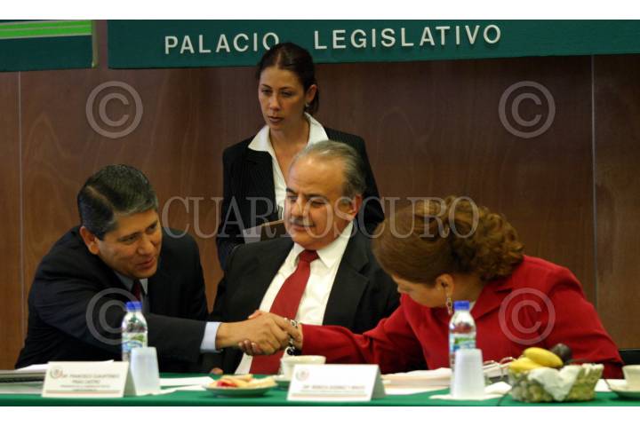 MEXICO D.F. 05MARZO2005.- Los diputados Fco. Cuauhtèmoc Frias, Rebeca Godinez, Alejandro Ramos Flores, y el procurador del Estado de México, Alfonso Navarrete Prida, durante la reuniòn de trabajo sostenida en San Lázaro. FOTO: Sandra Perdomo/CUARTOSCURO.COM