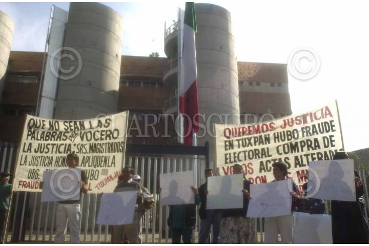 México, D.F. 30DIC2003.- Protesta a las afueras del Tribunal Electoral del Poder judicial de la Federación por parte de ciudadanos de Tuxpan quienes reclaman que las elecciones pasadas fueron fraudulentas. FOTO: Sandra Perdomo/CUARTOSCURO.COM