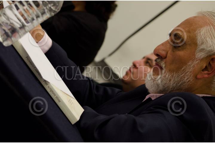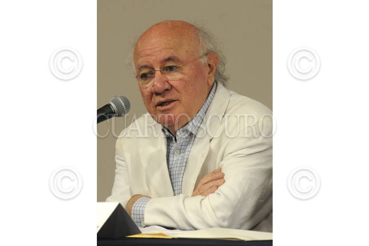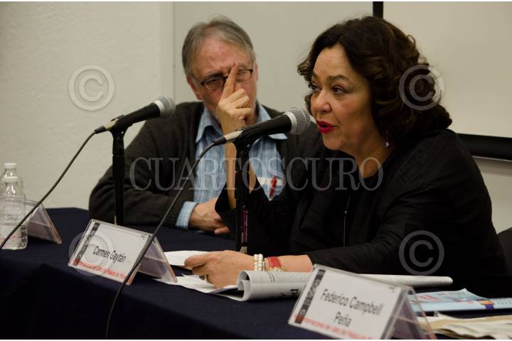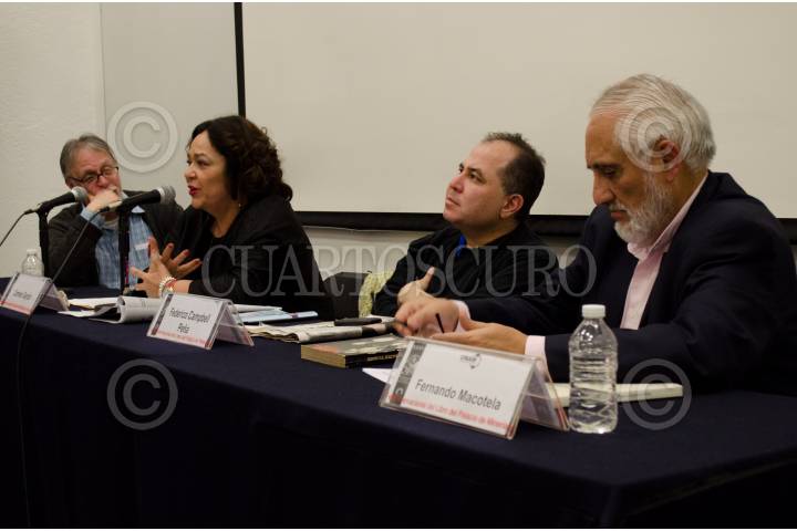 MÉXICO, DF., 01MARZO2014.- Los escritores David Huerta y Fernando Macotela, director de la Feria Internacional del Libro del Palacio de Minería, ofrecieron un homenaje al escritor Federico Campbell, quien falleció el pasado 15 de febrero a los 72 años de edad. “Él era verdaderamente una buena persona”, se expresó de su también amigo. Carmen Gaytán, viuda del escritor y traductor tijuanense, y Federico Campbell Peña, su hijo, asistieron al homenaje. “Es demasiado pronto todavía”, comentó ella ante el público asistente. FOTO: MARÍA JOSÉ MARTÍNEZ /CUARTOSCURO.COM