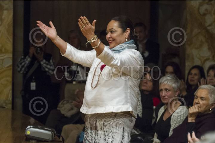 MÉXICO, D.F., 15FEBRERO2015.- Carmen Gaitán Rojo, viuda de Federico Campbell, durante el homenaje realizado al escritor mexicano, en la sala Manuel M. Ponce, del Palacio de Bellas Artes. FOTO: ISAAC ESQUIVEL /CUARTOSCURO.COM