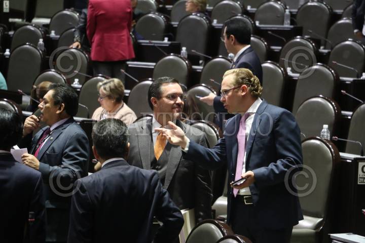 CIUDAD DE MÉXICO, 17SEPTIEMBRE2025.- Federico Döring, diputado del PAN, y Alfonso Ramírez Cuéllar, diputado de Morena, durante la sesión ordinaria semipresencial de la Cámara de Diputados en la que se analizó el Primer Informe de Gobierno Federal en materia política económica y social. FOTO: MARIO JASSO/CUARTOSCURO.COM