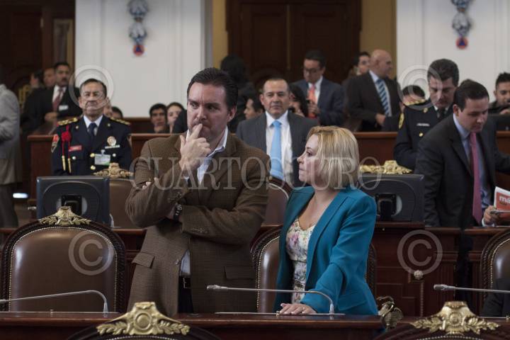 MÉXICO, D.F., 19MARZO2013.- Los diputados panistas Federico Döring Casar y Olivia Garza de los Santos en la sesión solemne de la Asamblea Legislativa del DF. FOTO: MOISÉS PABLO /CUARTOSCURO.COM