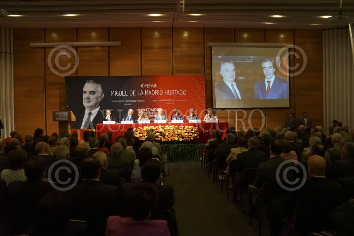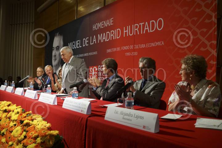 MÉXICO, D.F., 17ABRIL2013.- El maestro Jose Carreño Carlión, Director General del Fondo de Cultura Económica, el licenciado Federico Reyes Heroles, Presidente , la licenciada Margarita de la Madrid Cordero, Emilio Chuayffet Secretario de Educación Pública, el licensiado, Enrique de la Madrid Cordero, Director General de Bancomext,Rafael Tovar y de Teresa, Presidente del Consejo Nacional para la Cultura y las Artes y la licenciada Alejadra Layouz en el Homenaje y presentación de la pagina de internet de Miguel de la Madrid que se llevó a cabo en el Fondo de Cultura Económica. FOTO: ALEJANDRO NEYRA /CUARTOSCURO.COM3