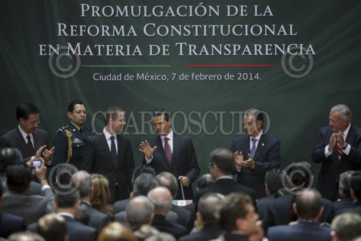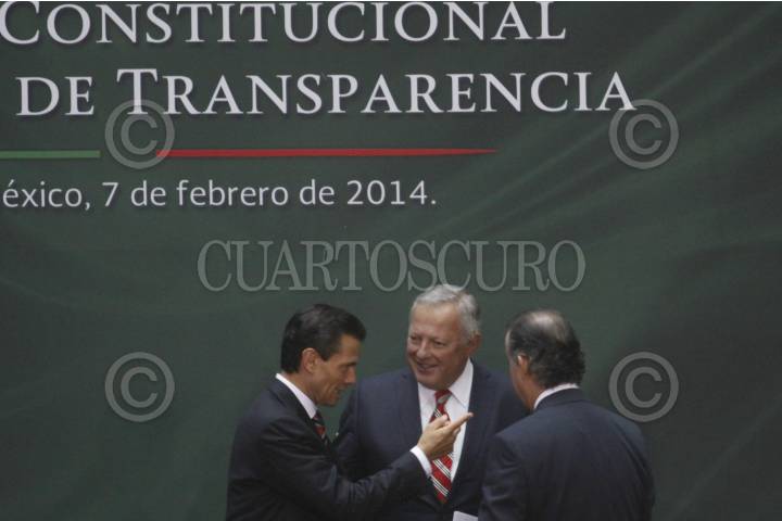 MÉXICO, D.F., 07FEBRERO2014.- Enrique Peña Nieto, Presidente de México, Raúl Cervantes, presidente de la Cámara de Senadores y Federico Reyes Heroles, presidente de Transparencia Mexicana, durante la firma de promulgación de la reforma constitucional en materia de transparencia en el Palacio Nacional. FOTO: MOISÉS PABLO /CUARTOSCURO.COM