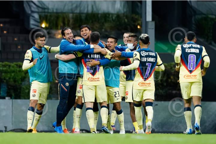 Federico Viñas (América) festeja su gol con sus compañeros.