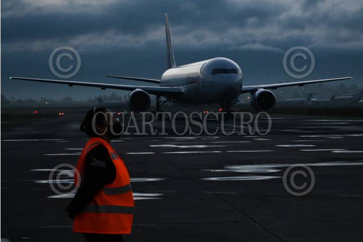 Un avión aterriza en el Aeropuerto Internacional de Toluca.