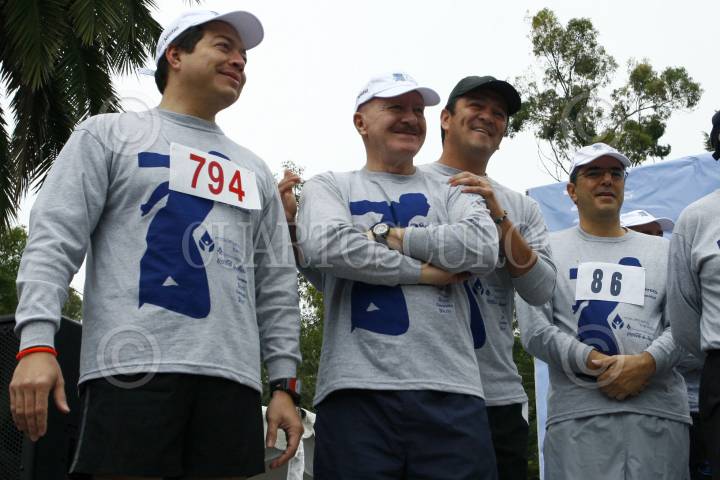 MÉXICO, D.F. 21OCTUBRE2007.- El titular de la CONADE, Carlos Hermosillo, Manuel Mondragón, secretario de salud local y Mario Delgado, secretario de finanzas del Distrito Fedral durante la carrera contra la obesidad que tuvo lugar en Chapultepec. FOTO: PAOLA HIDALGO/CUARTOSCURO.COM