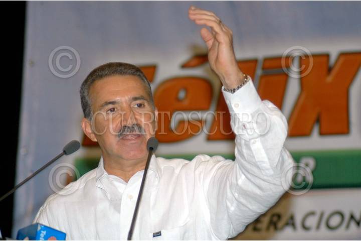 CANCUN, QUINTANA ROO, 19ENERO2005.- Roberto Madrazo, líder nacional del PRI apoyó las candidaturas de Félix González Cantú, candidato a la gobernatura de Guerrero por la Alianza PRI-Verde y Alor Quezada, candidato a presidente municipal de Cancún. FOTOS: Amaranta Prieto/CUARTOSCURO.COM