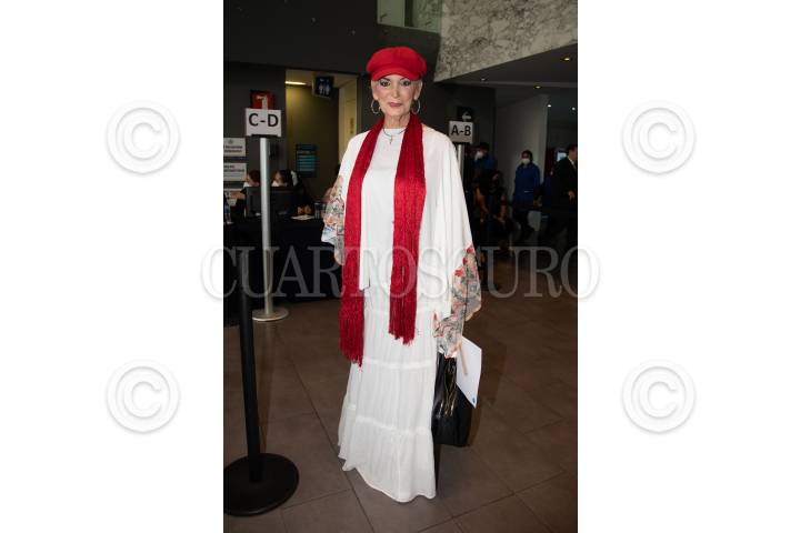 Felicia Mercado a su paso por la alfombra roja por la celebración de los 50 años de carrrera del diseñador Mitzy.