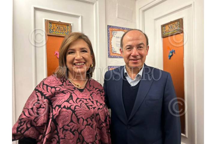 MADRID, ESPAÑA, 11FEBRERO2024.- Xóchitl Gálvez, candidata a la Presidencia de la República por el PAN; PRI, y PRD, se reunión con el ex Presidente de México, Felipe Calderón, durante una tertulia con la comunidad mexicana en Madrid. FOTO: PRENSA XÓCHITL GÁLVEZ/CUARTOSCURO.COM